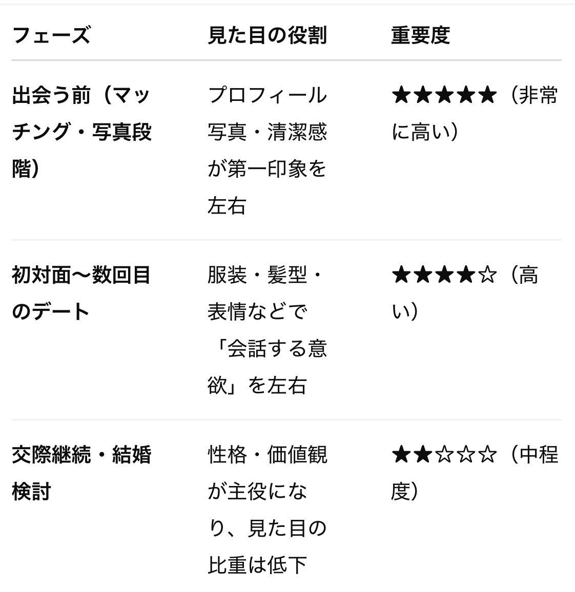 婚活における「見た目」の重要度
